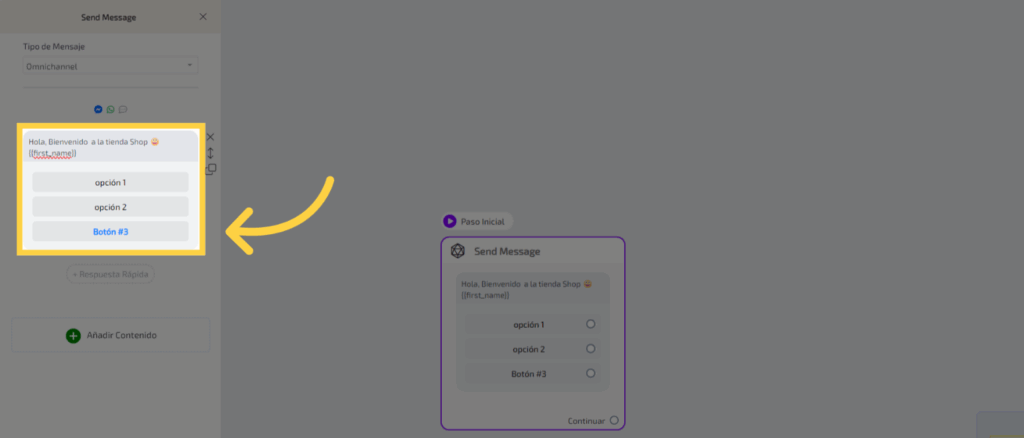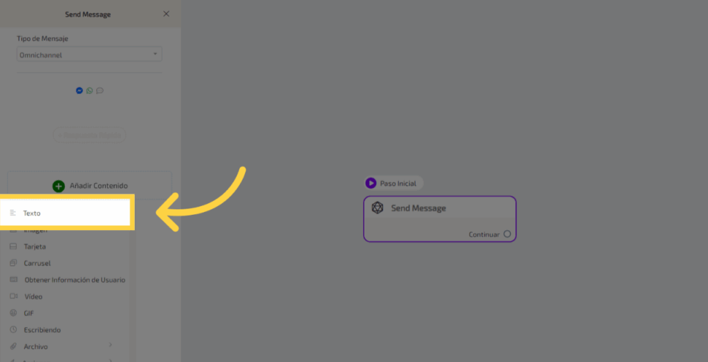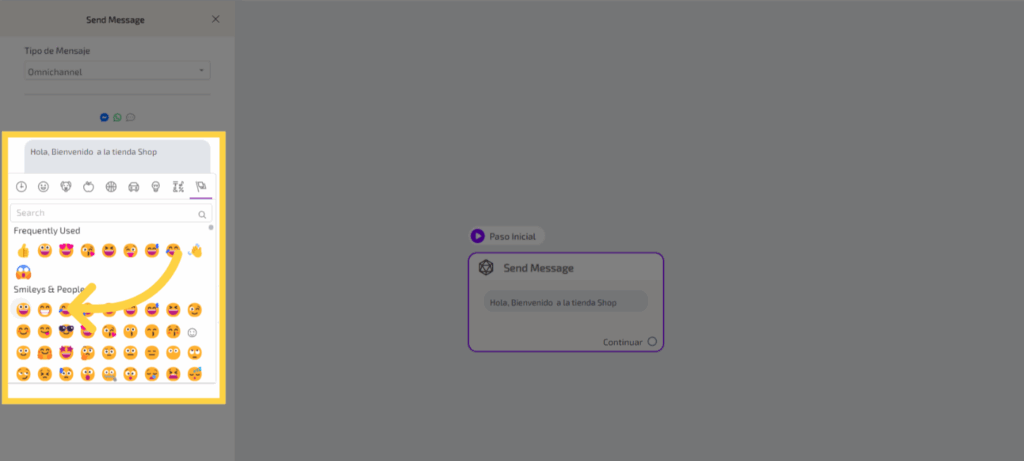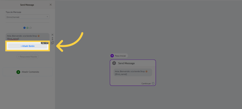 1. Clic “Paso Inicial Send MessageContinuar”