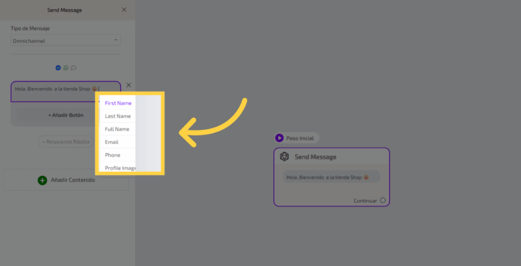 Seleccionando este campo puedes personalizar tu mensaje con datos almacenados en los campos personalizados