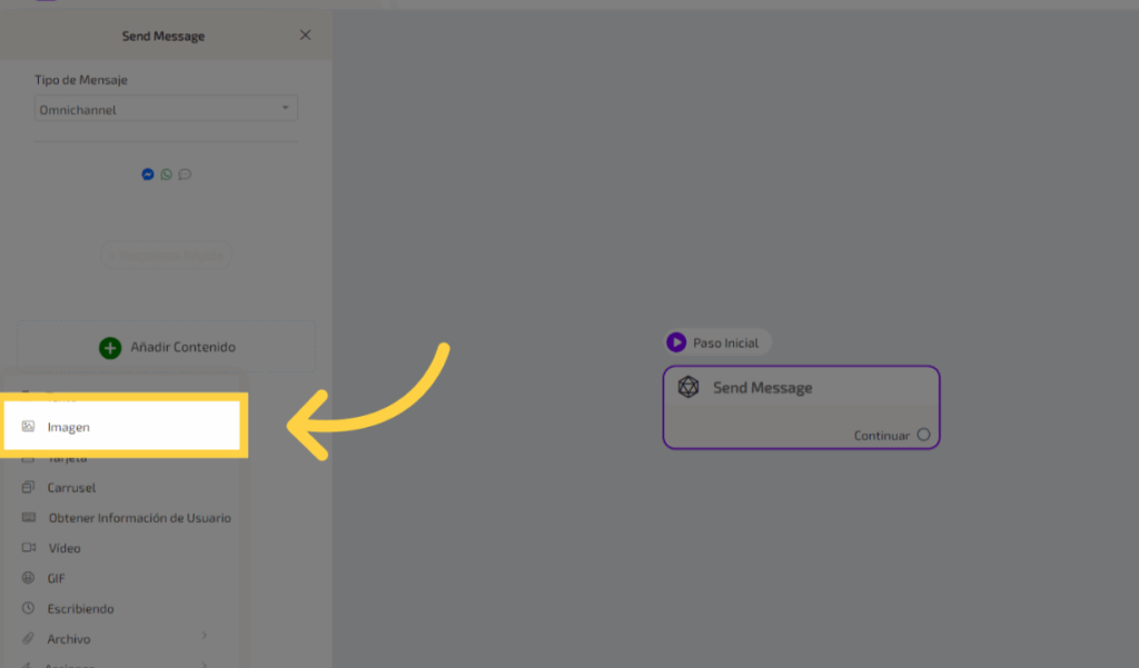 Haga clic en “Imagen” para agregar una imagen al flujo.