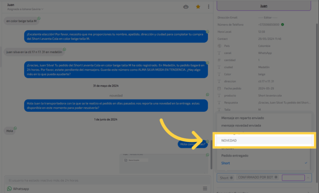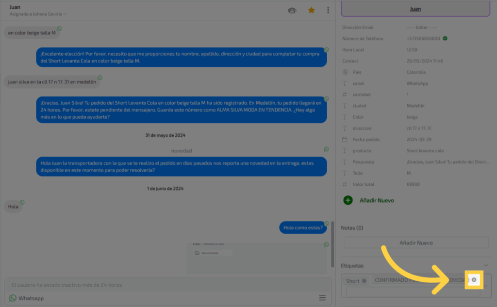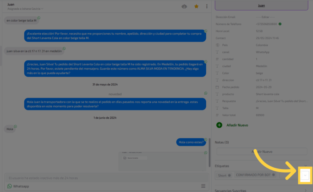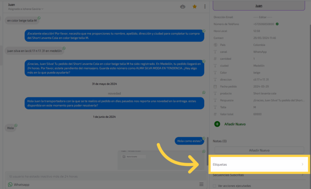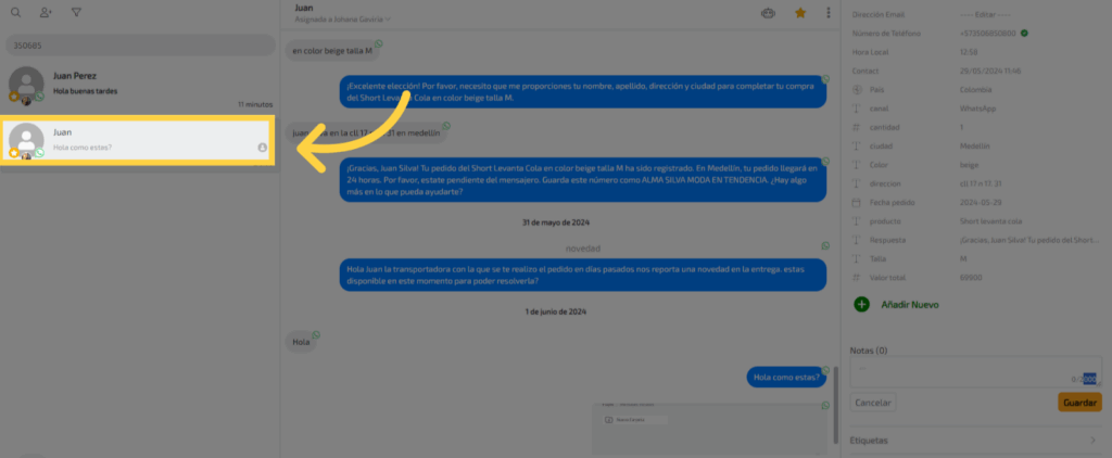 Selecciona la conversación del contacto al cual quieres agregarle la etiqueta