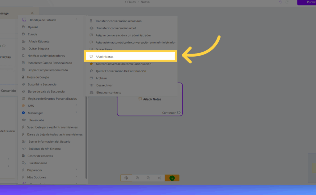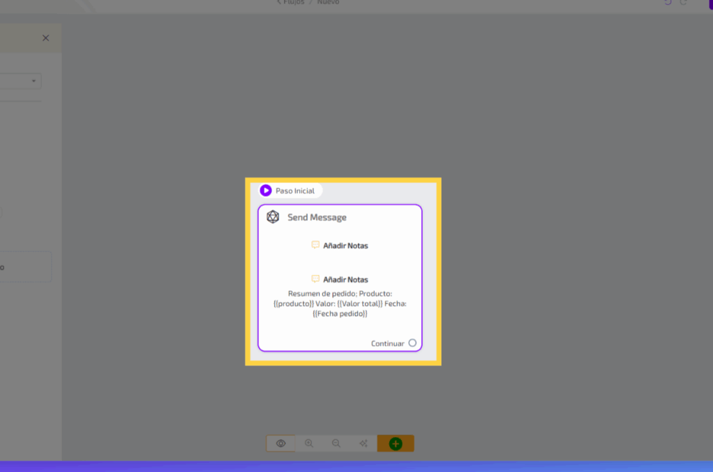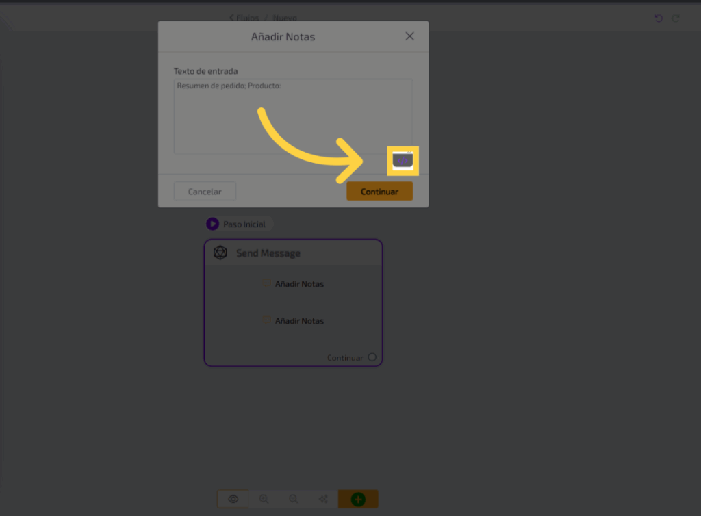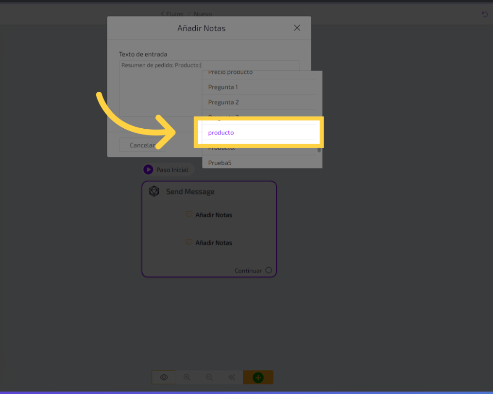 Seleccione este campo para agregar en la nota el dato del campo personalizado