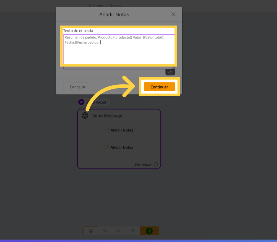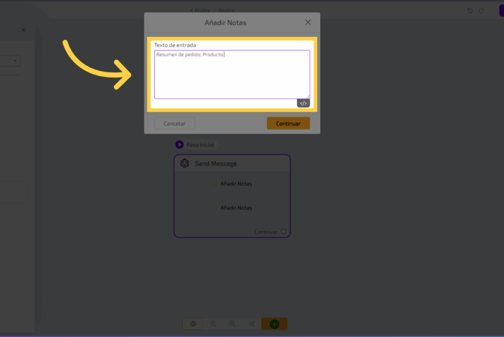 Escriba la nota que desea guardar, ejemplo, “Resumen de pedido producto”.