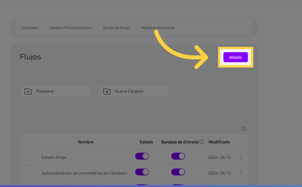 Vamos a crear el campo personalizado. Da clic en “Añadir Nuevo”