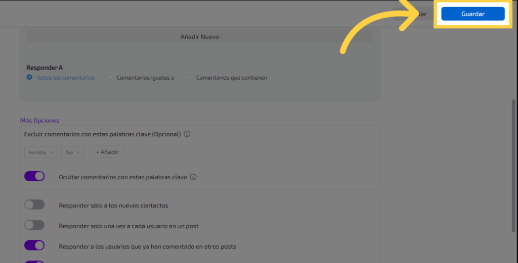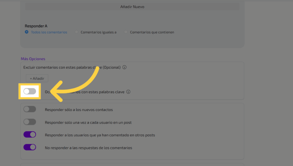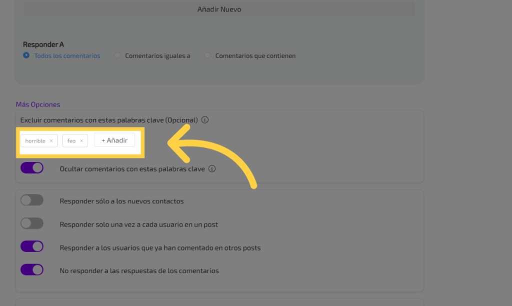 Añade todas la palabras que puedan estar incluidas en los comentarios que quieras ocultar.