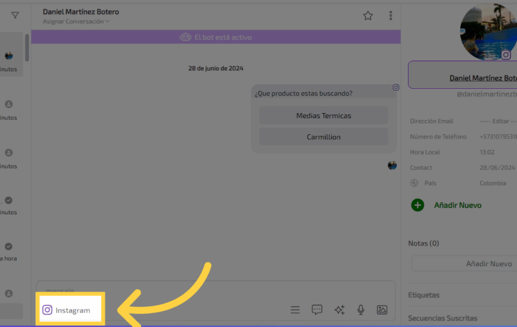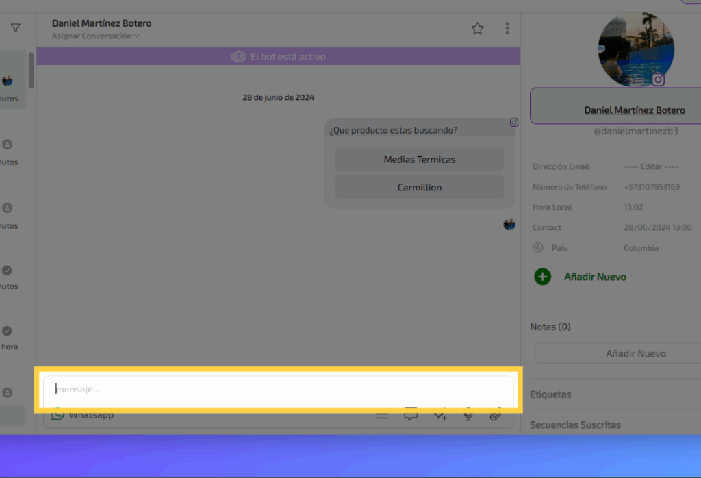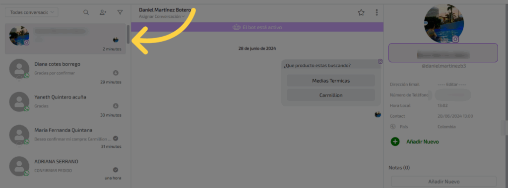 Una vez lo hayas elegido, podrás comunicarte por el nuevo canal.