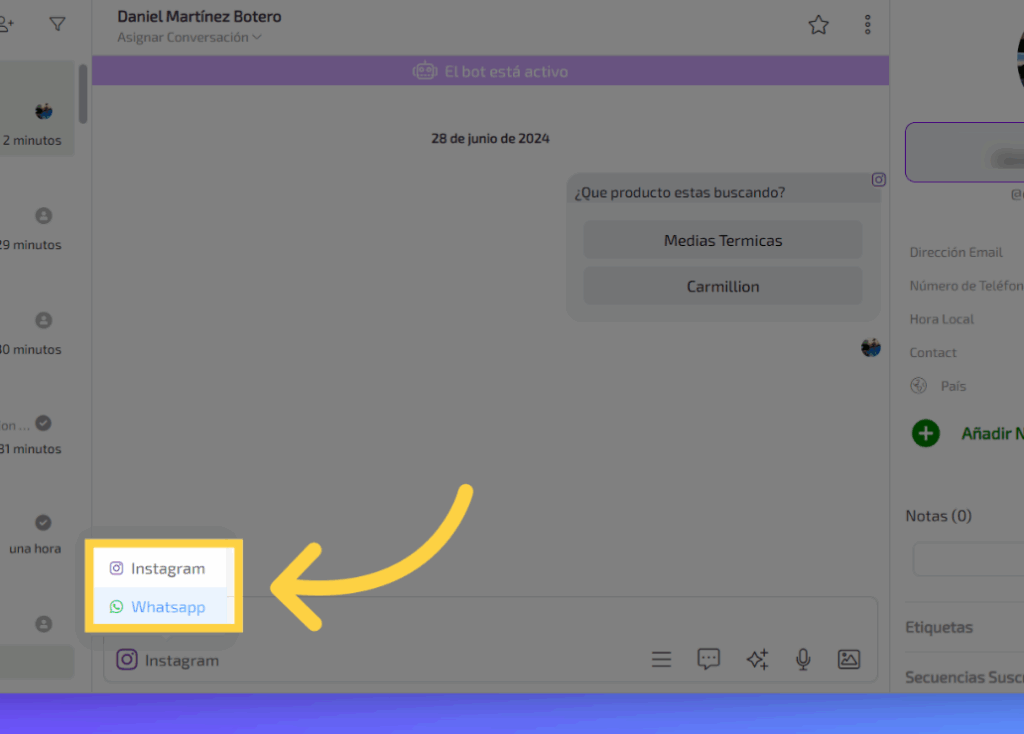 Descubre cómo cambiar de canal en una conversación con AdsmartBot.