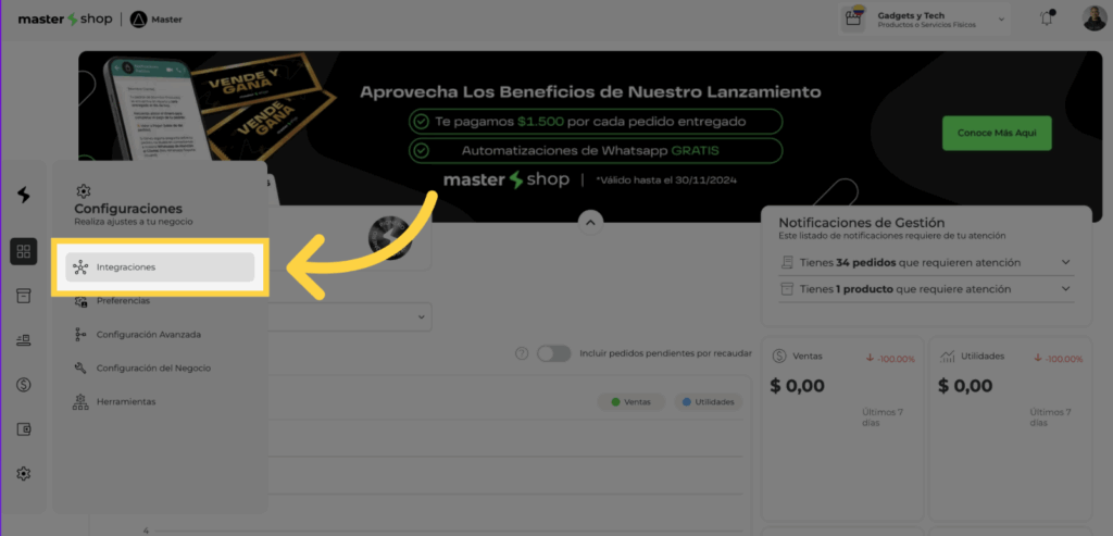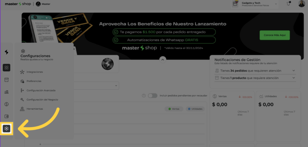 Accede a la plantilla de automatización de pedidos en Master Shop.
