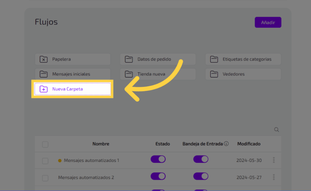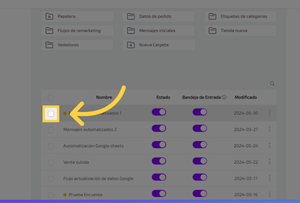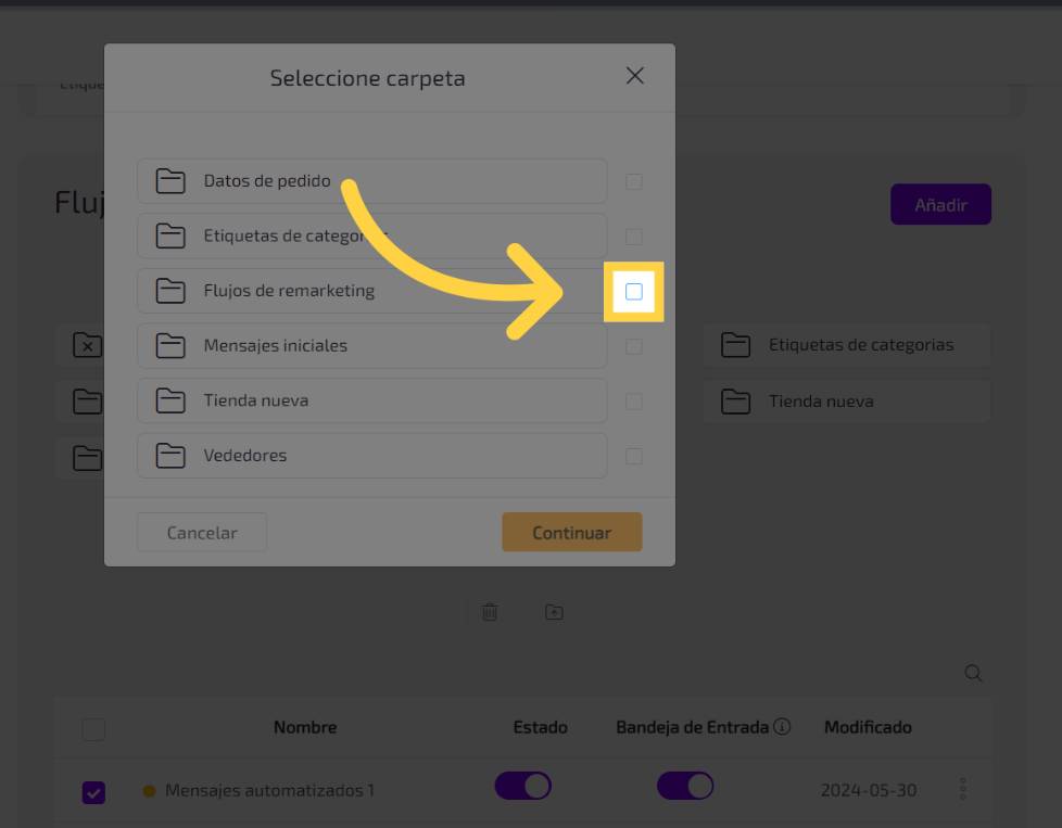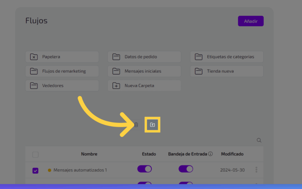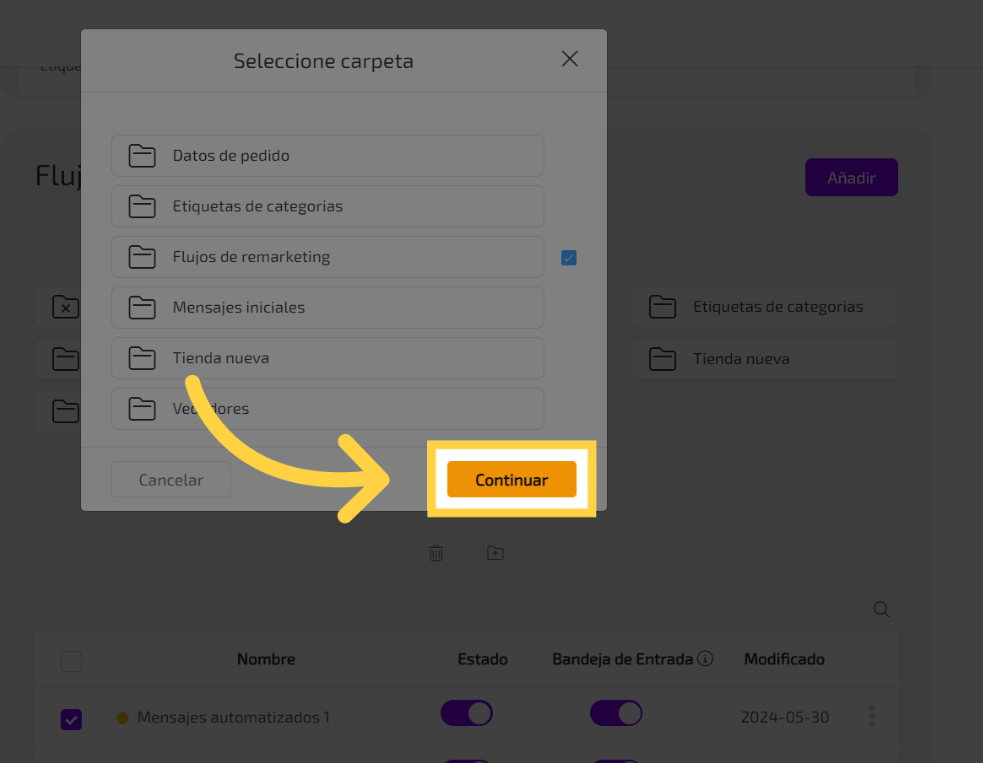 selecciona los flujos que quieres agregar a la carpeta