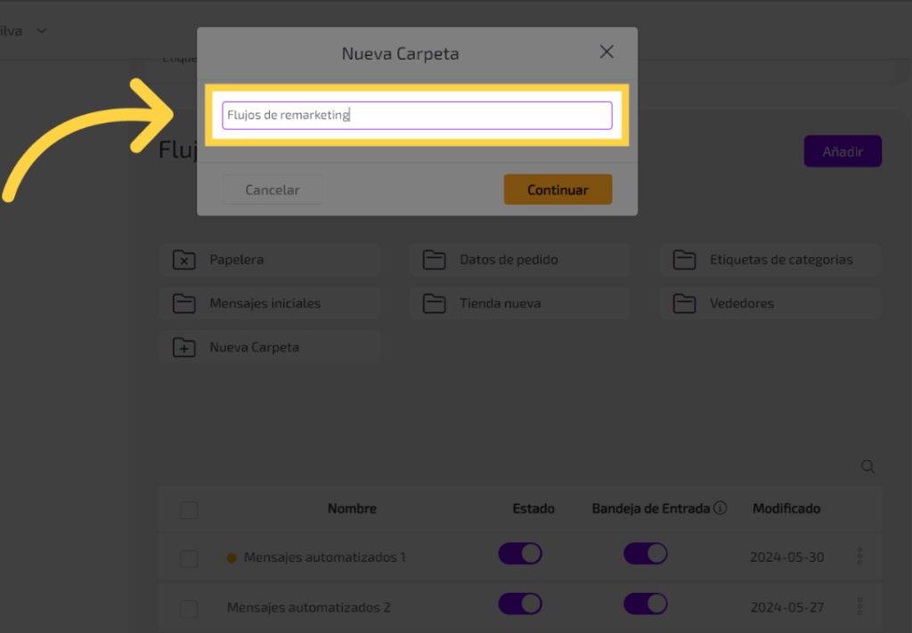 3. Llenar “Flujos de remarketing”