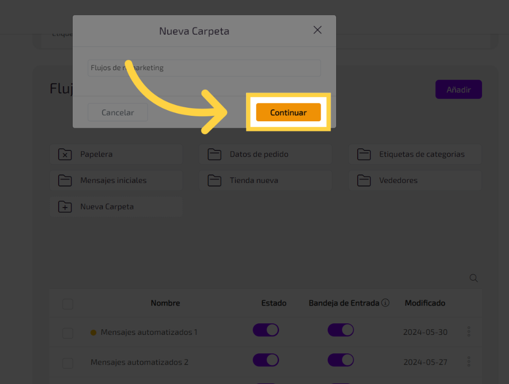 Ingresa el nombre de la carpeta