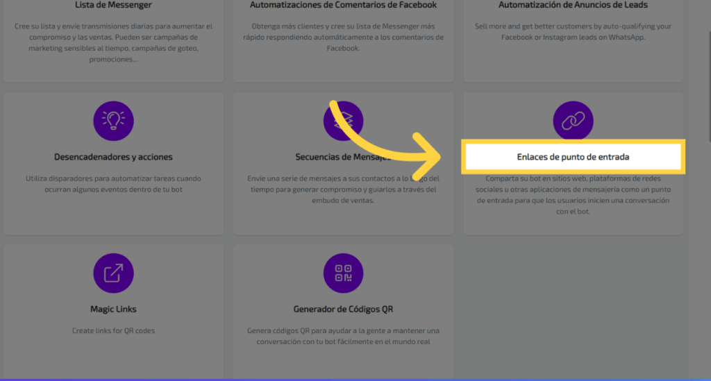 Dirígete a la sección de enlaces de punto de entrada.