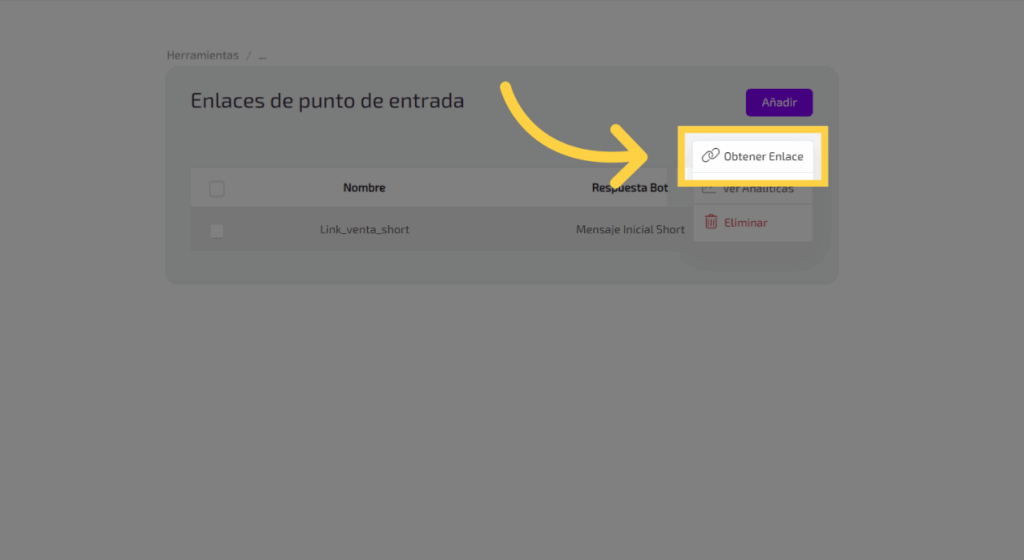 Accede a las herramientas para configurar el enlace de punto de entrada.