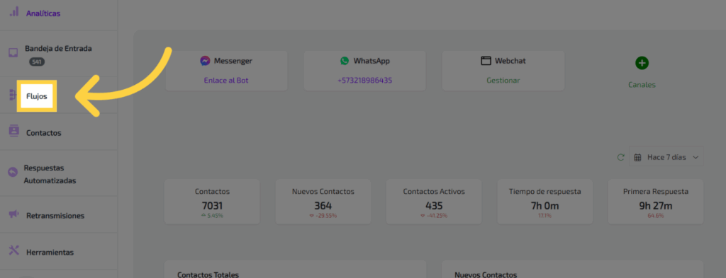 Accede a la sección de “Flujos” en la plataforma.
