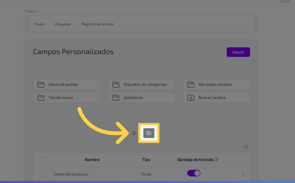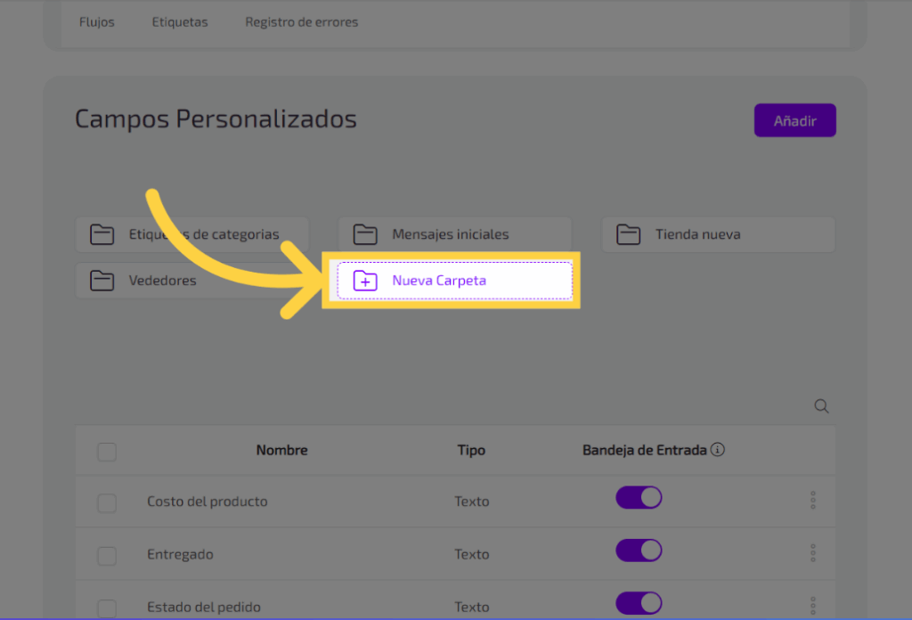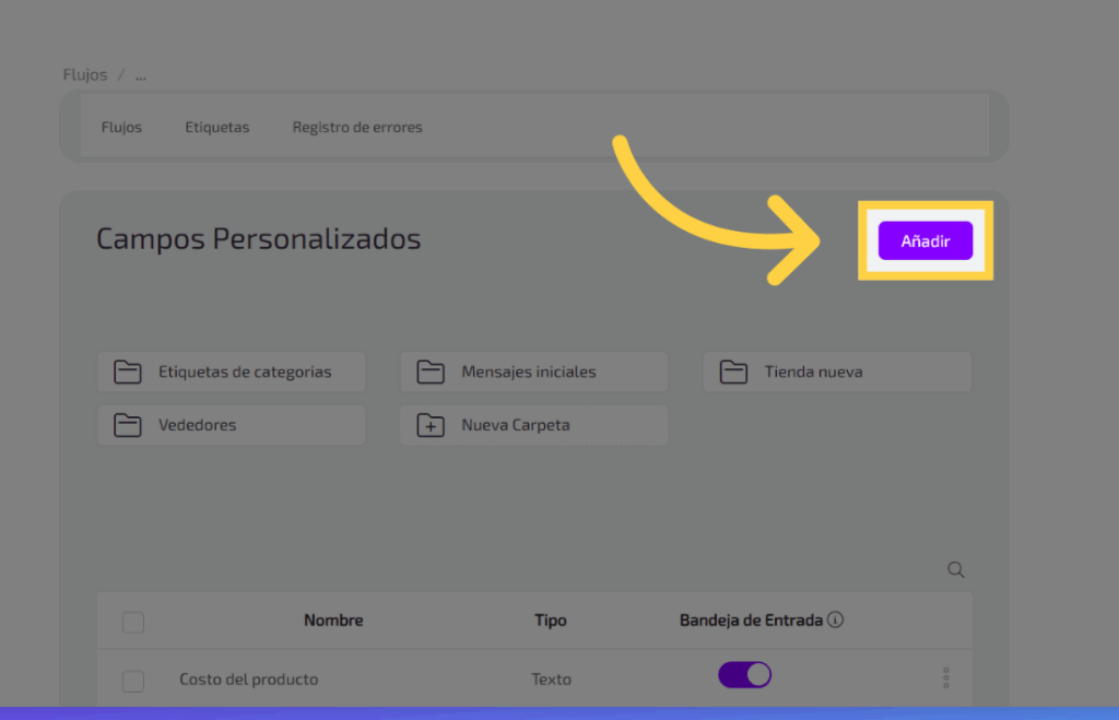 Haz clic en el botón de “Añadir” para comenzar a crear un campo personalizado.