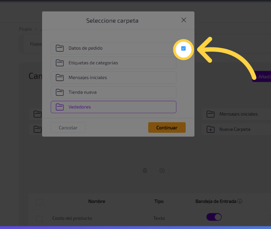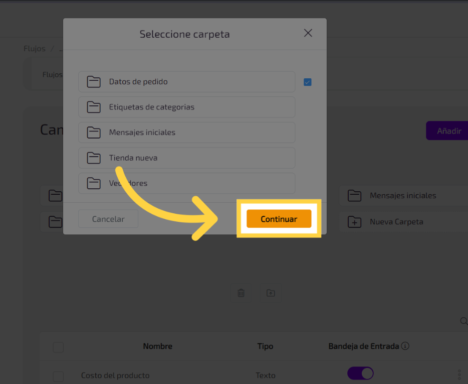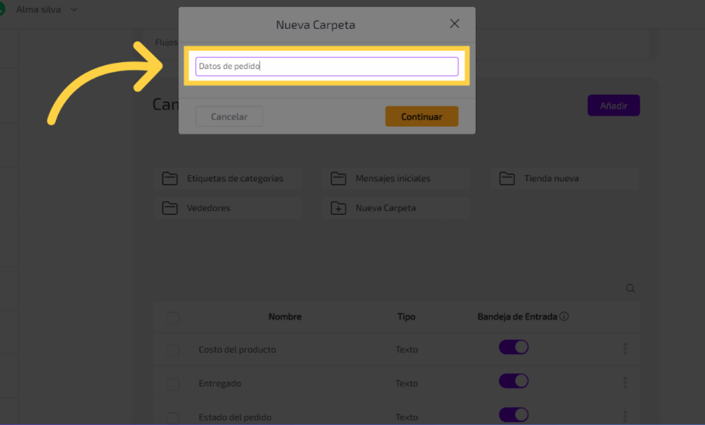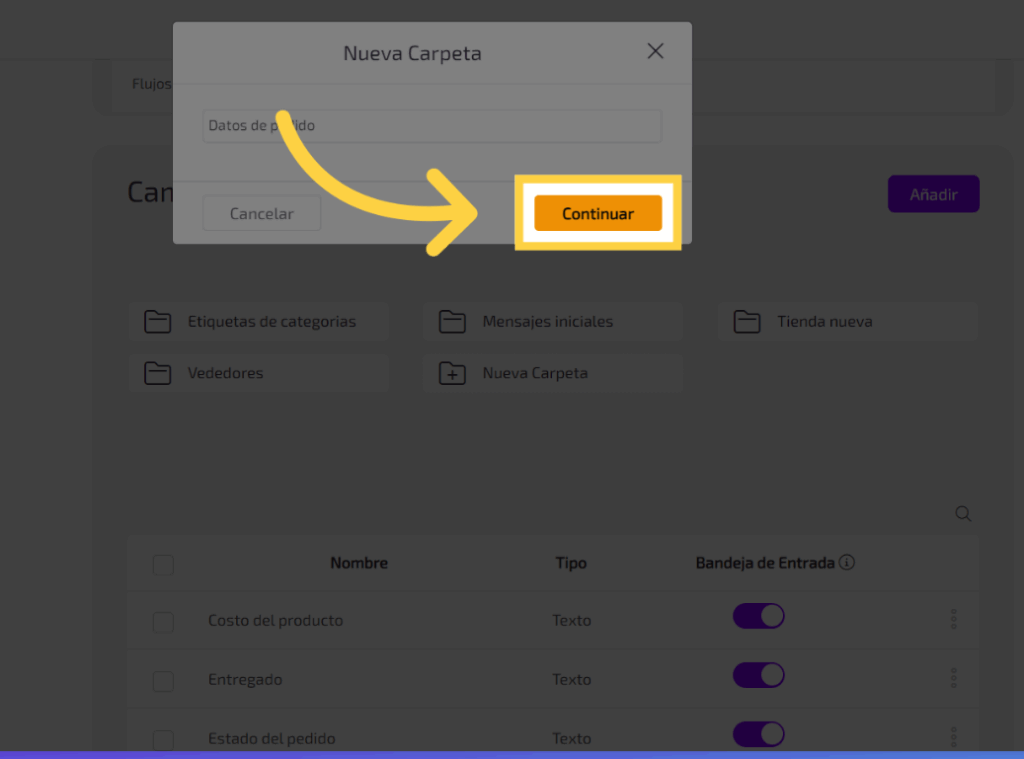 Para tener una mejor organización de tus campos personalizados puedes crear carpetas para almacenarlos siguiendo los siguientes pasos, primero Accede a la opción “Nueva Carpeta”