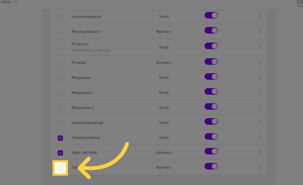 Selecciona todos los campos que deseas