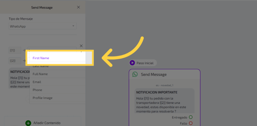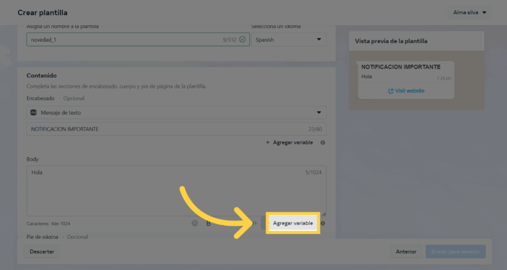 Puedes agregar variantes en “Agregar variable”. para hacer tu notificación personalizada