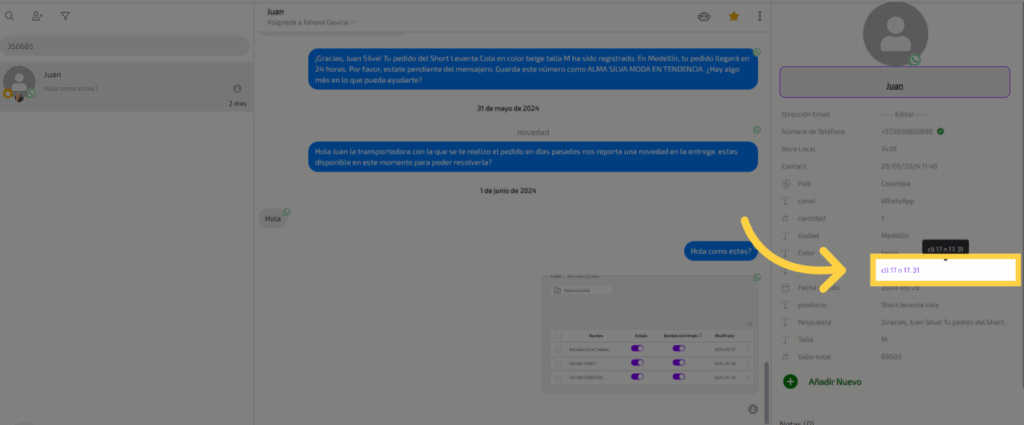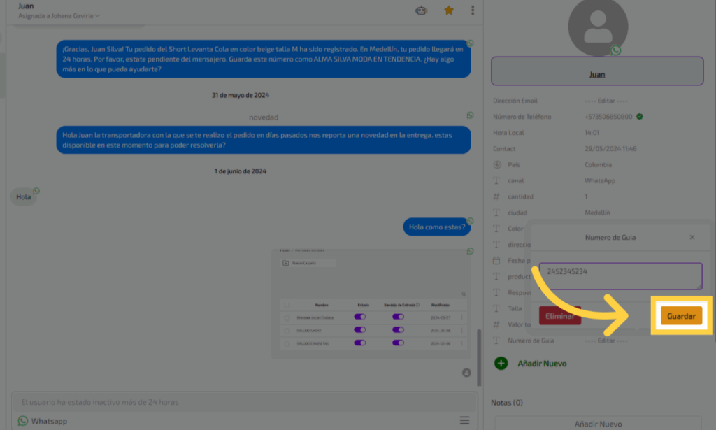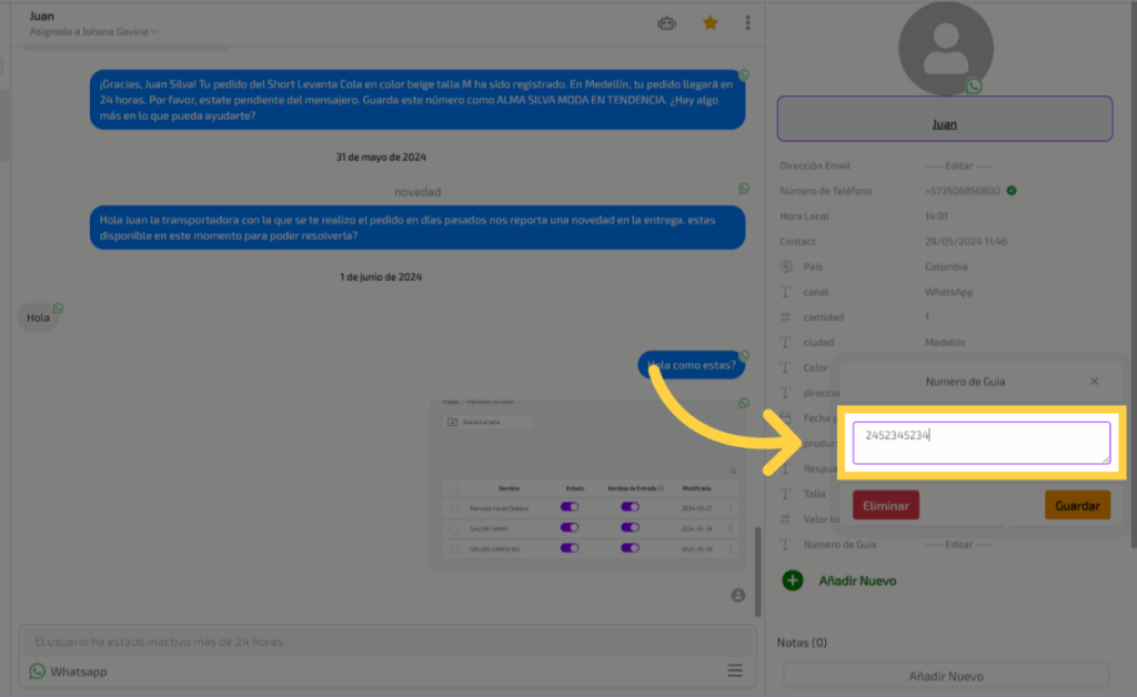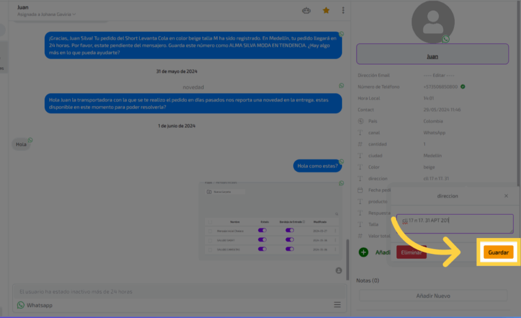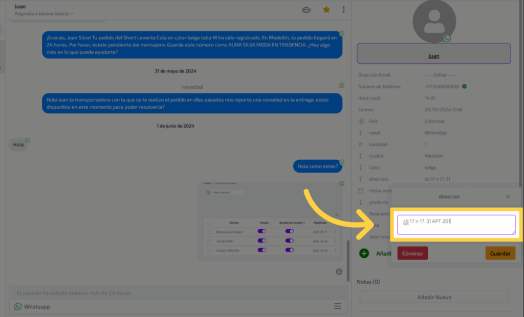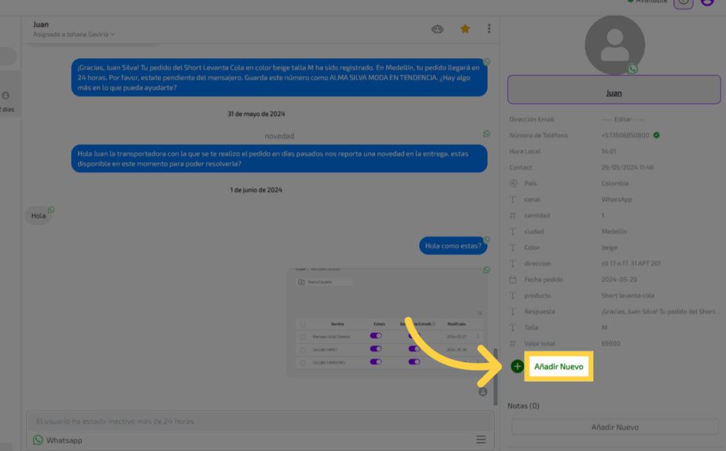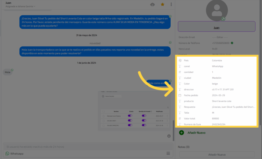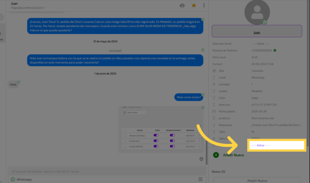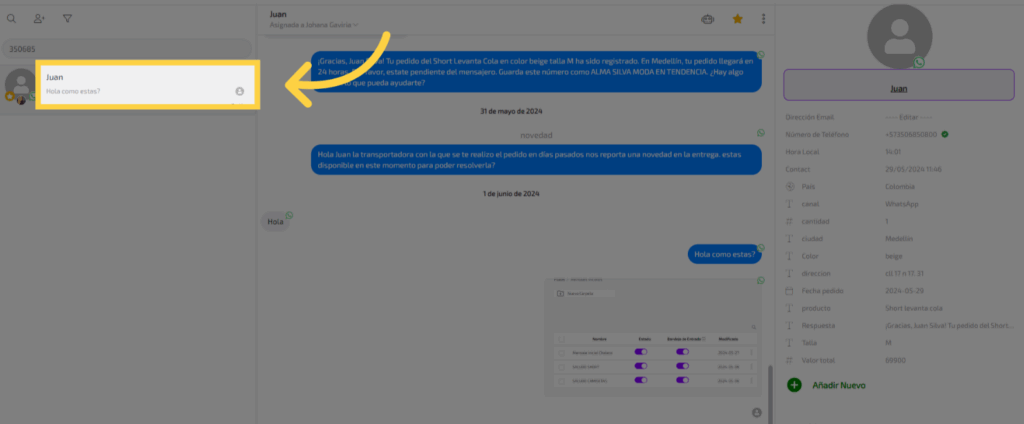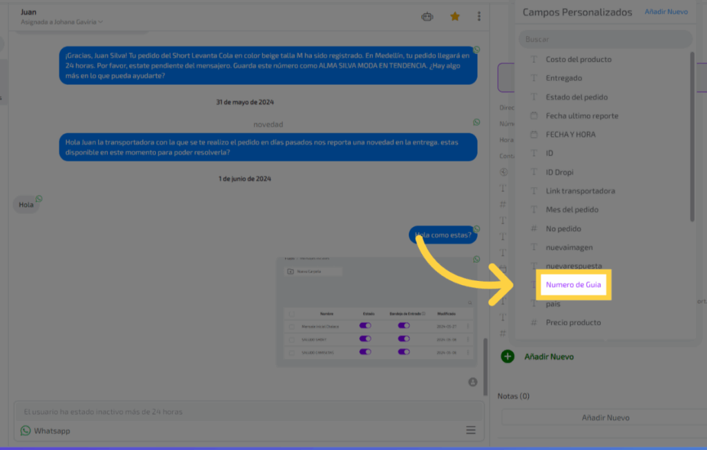 Accede a la conversación del contacto al cual quieres crear o editar un campo personalizado