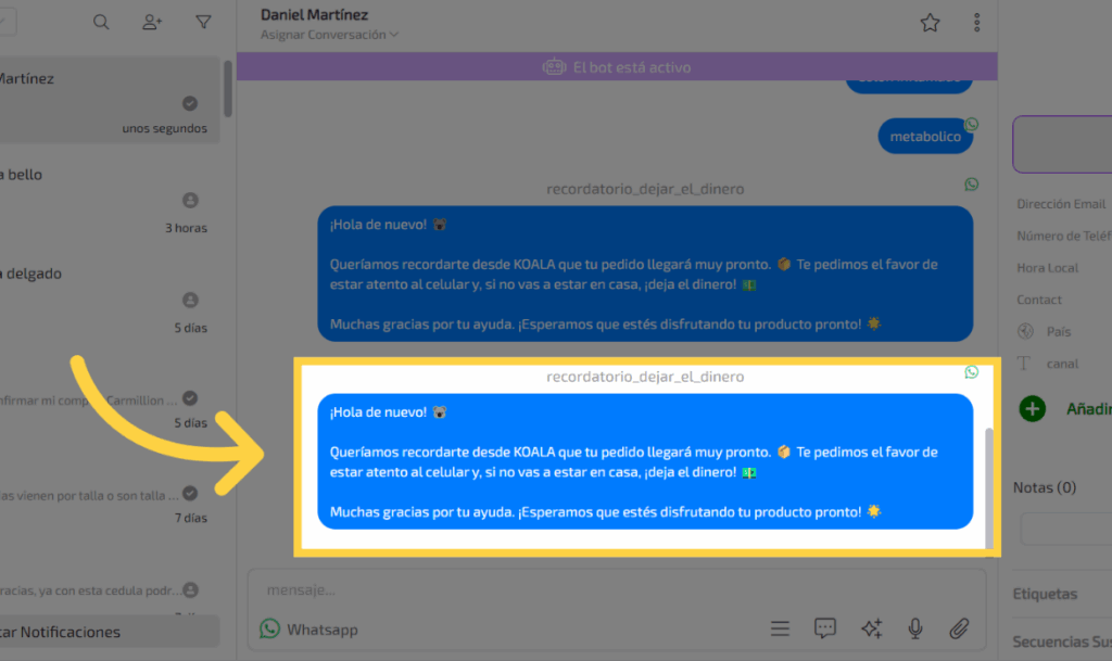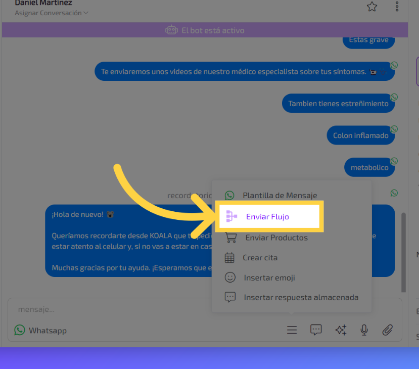 Aquí puede ver como el flujo seleccionado de manera manual a tu contacto elegido.