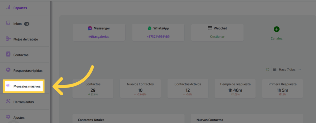 1. Clic “Mensajes masivos”