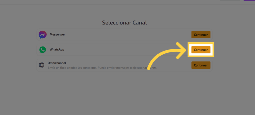 Ahora elige la opción de WhatsApp y da clic en “Continuar”.