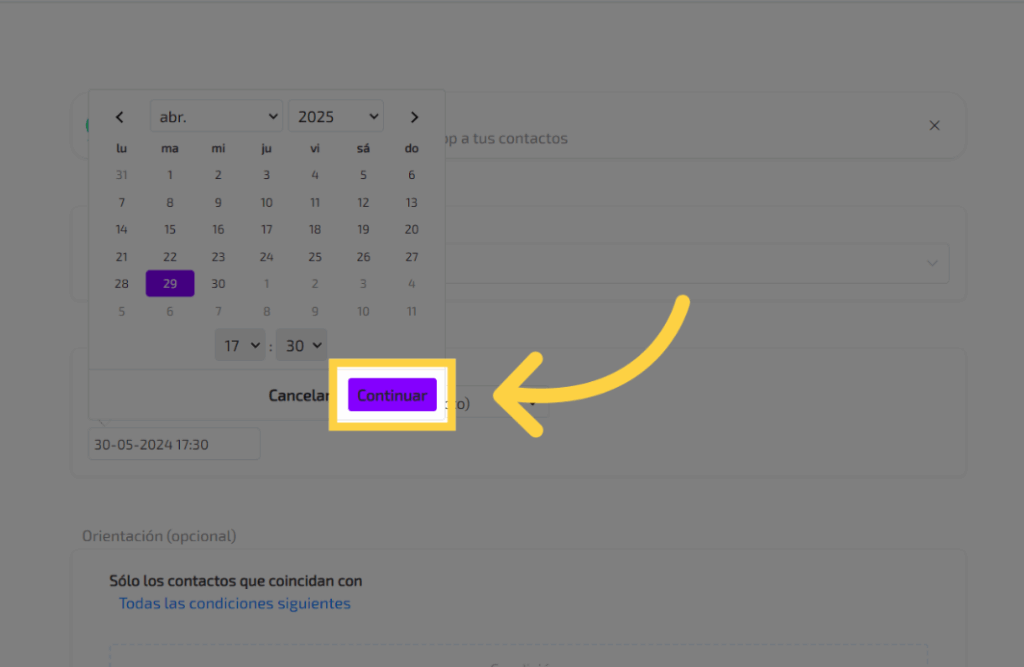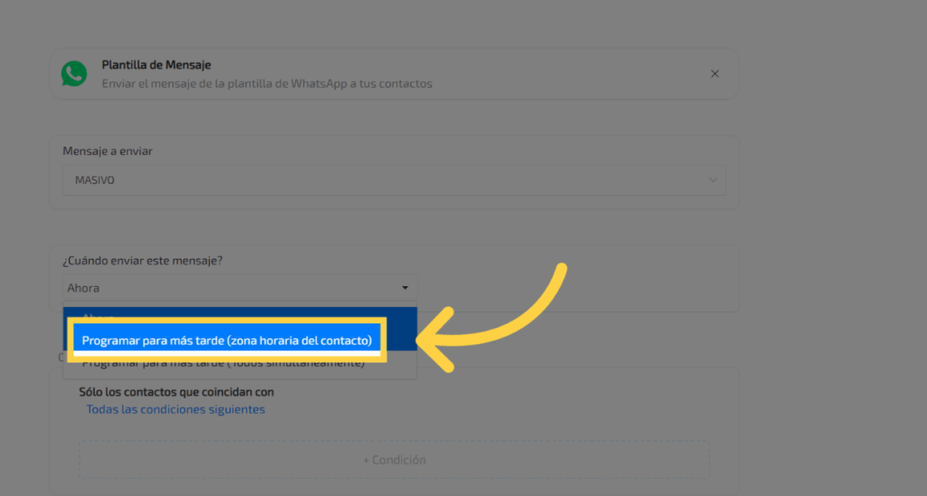 8. Clic “Programar para más tarde (zona horaria del contacto)”