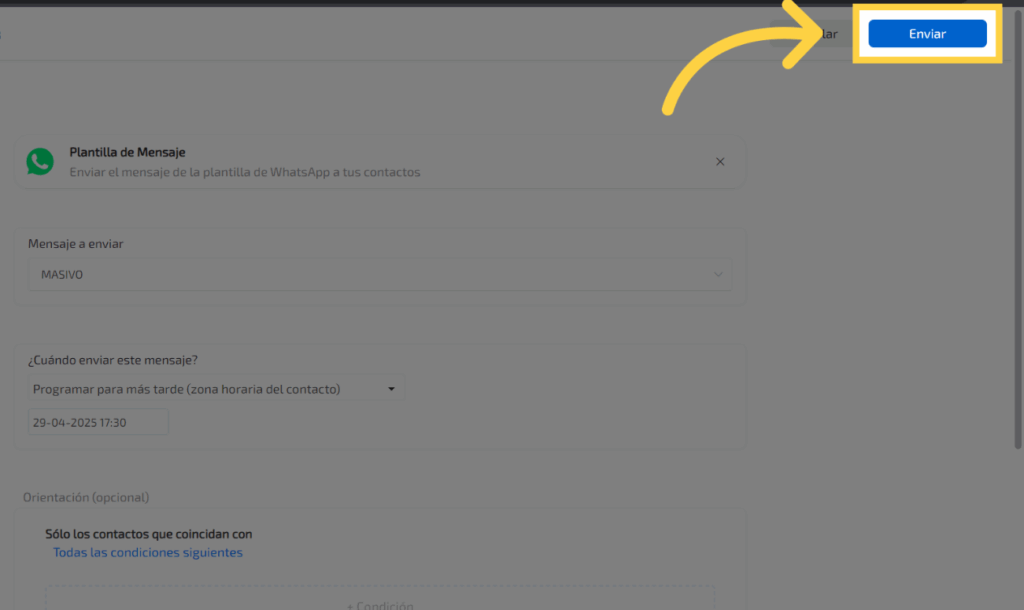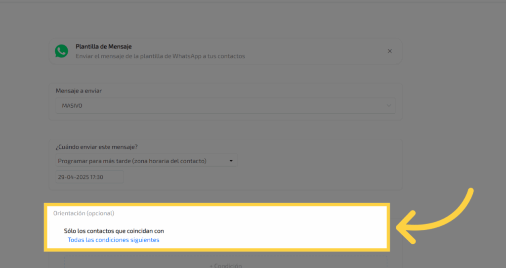 Si deseas hacer filtros avanzados para enviar los mensajes a algunos contactos específicamente lo podrás hacer en esta opción