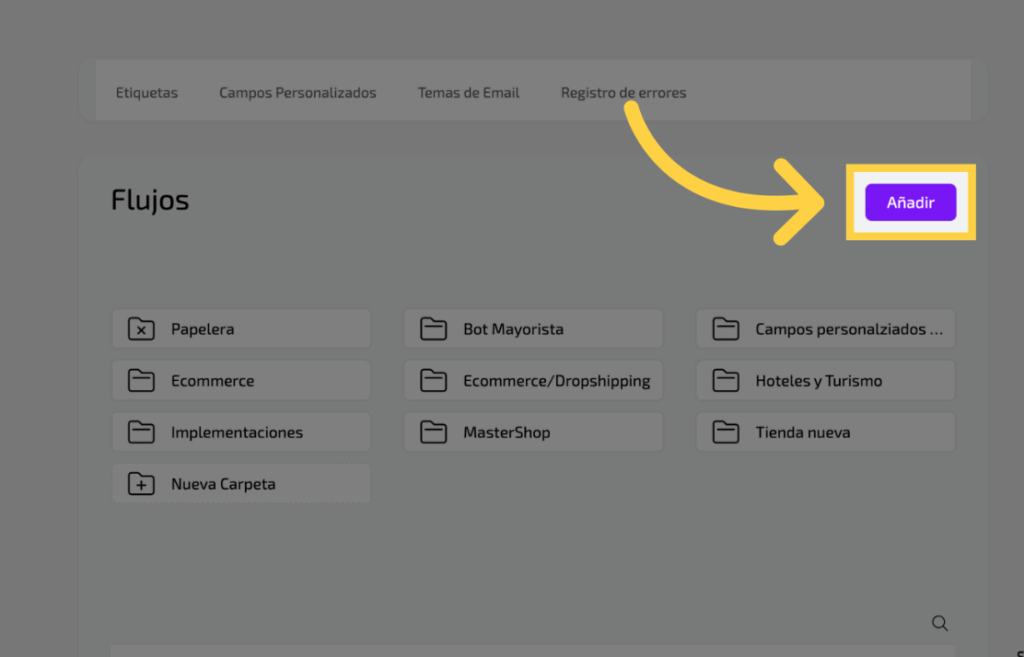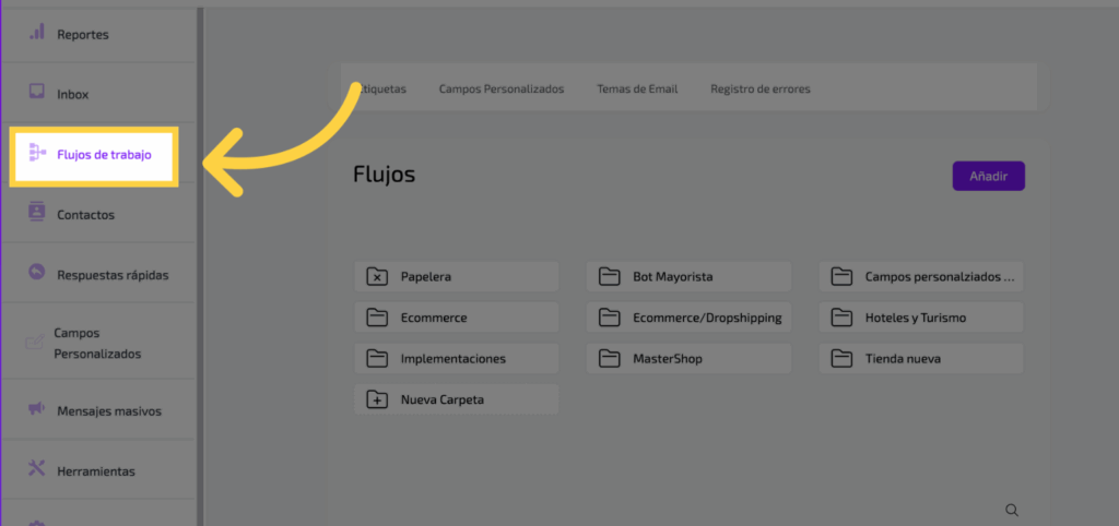 Primero, dirígete a AdsmartBot en panel y haz clic en “Flujos de trabajo”.