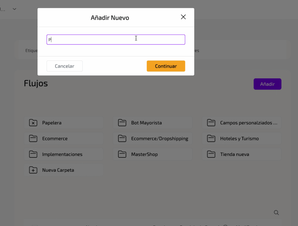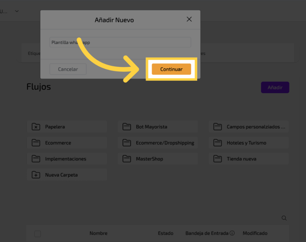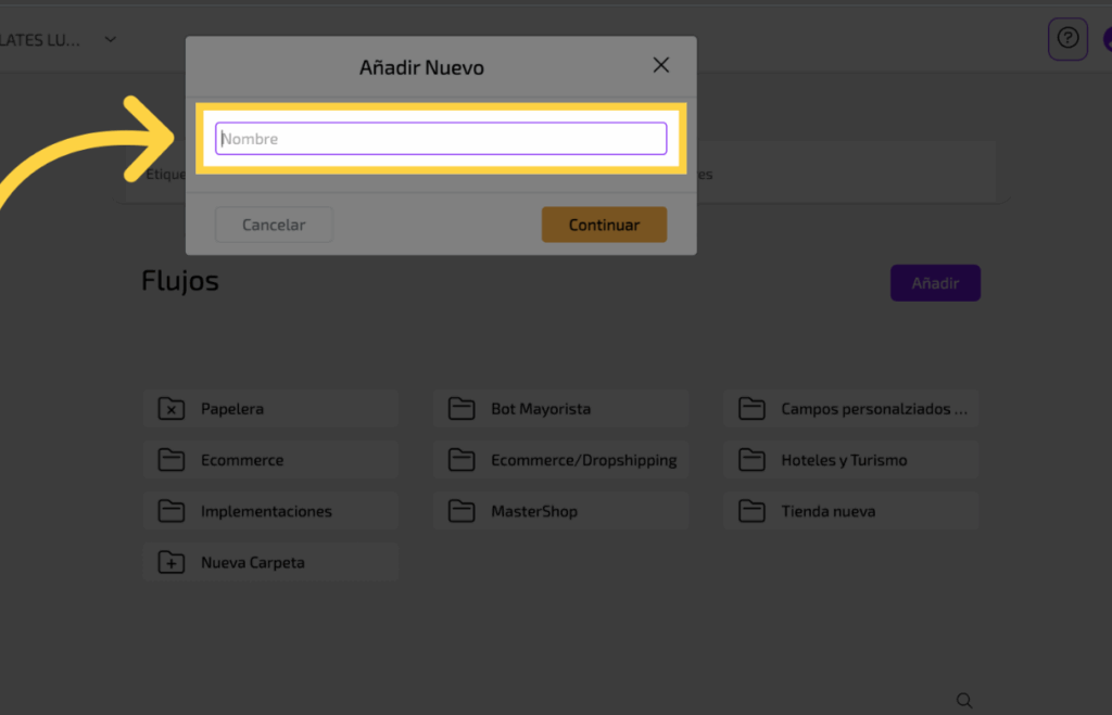 Escribe el nombre de tu flujo, por ejemplo, “Confirmación de pedidos”.