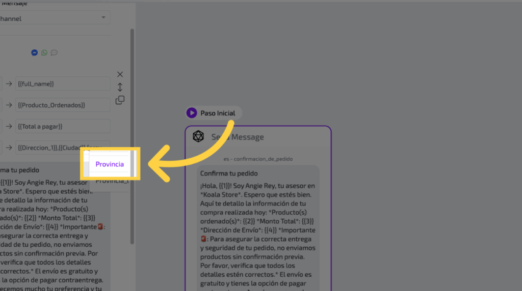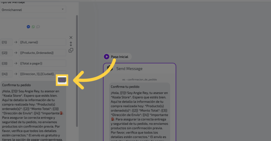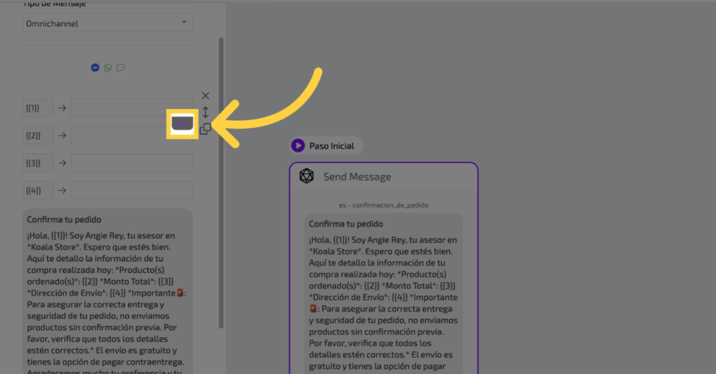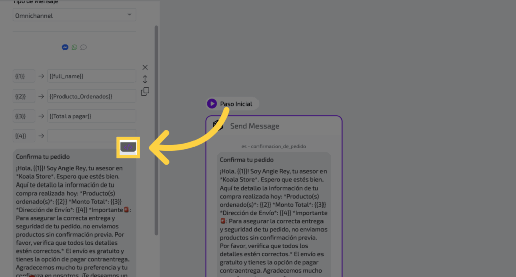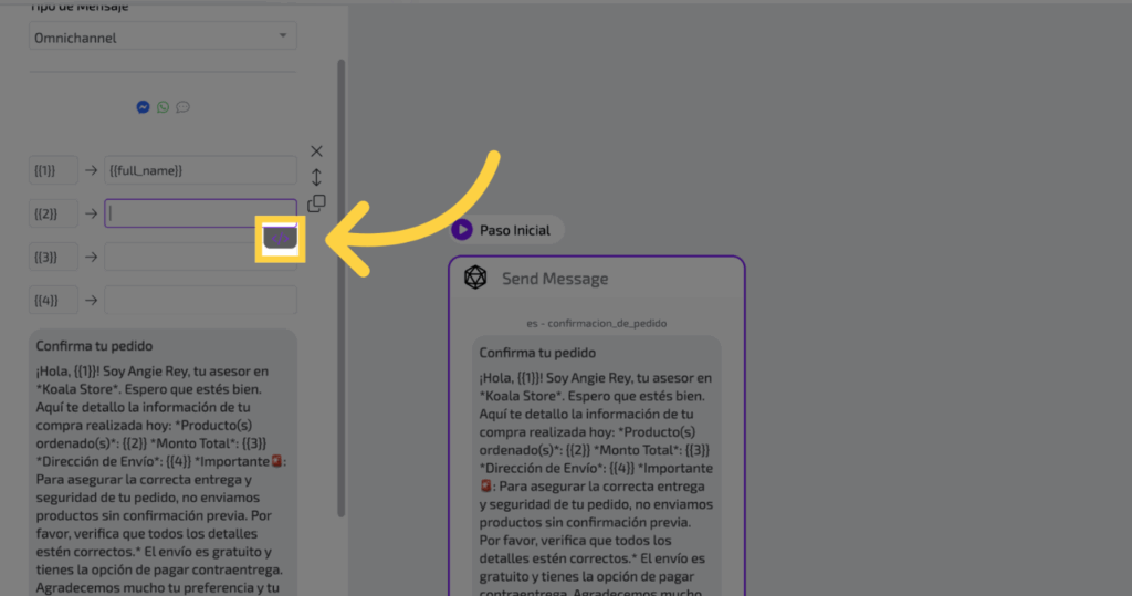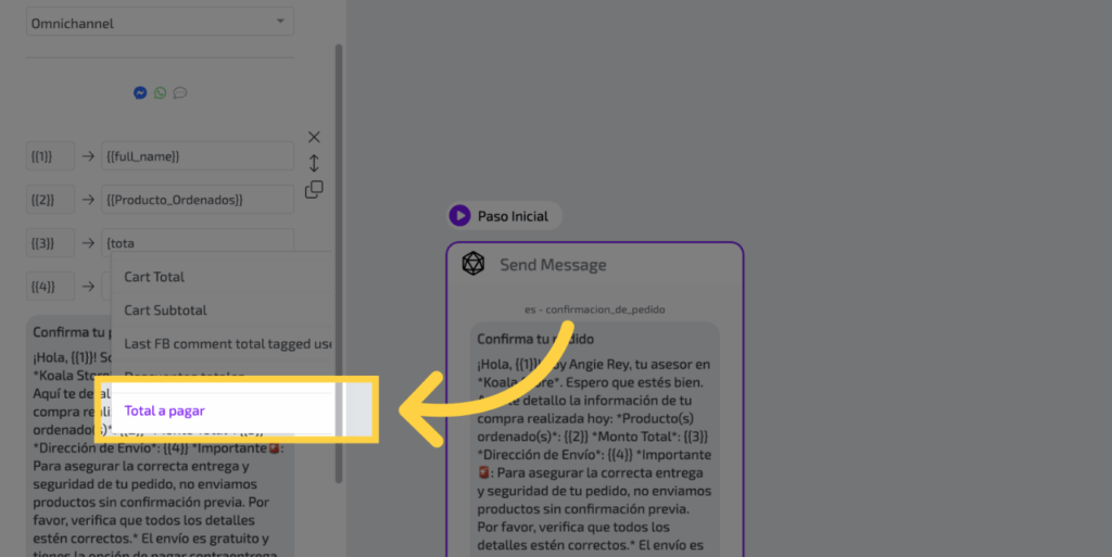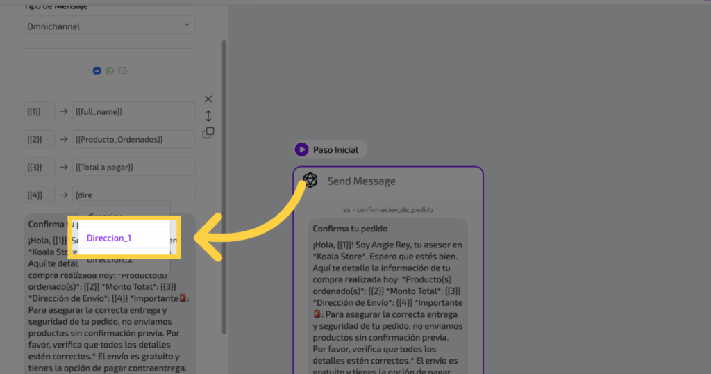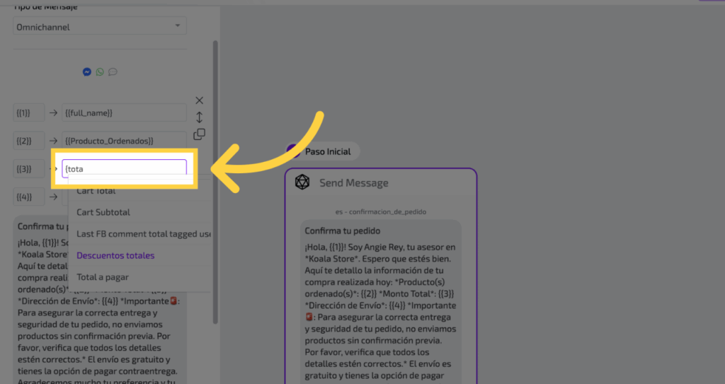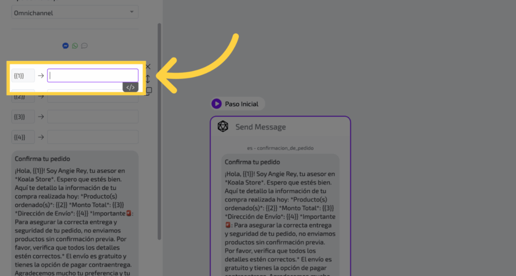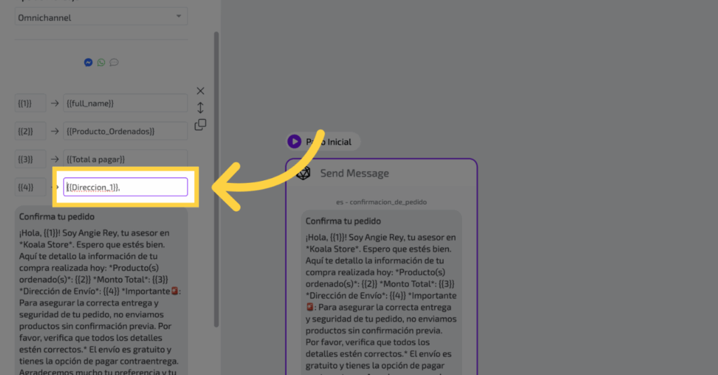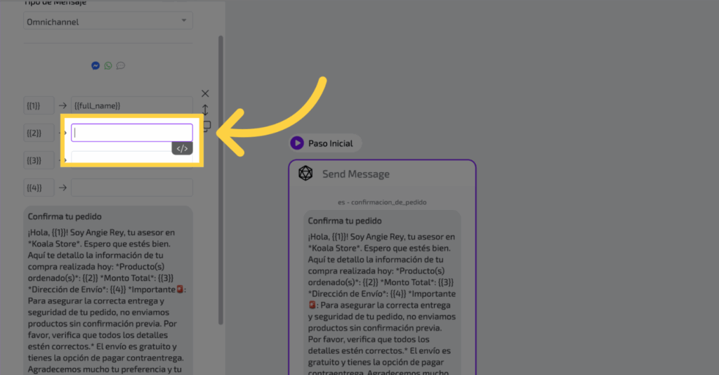 Haz lo mismo para todas las variables. En este ejemplo, la variable 2 corresponde a “Productos”, la variable 3 es “Total a pagar” y la variable 4 es “Dirección”.