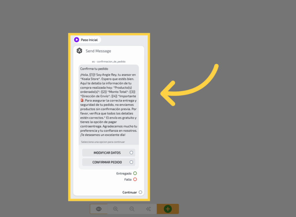 Esta será tu plantilla. Si no tienes botones, no necesitarás hacer nada más. Si tienes un botón que dirige a un sitio web, tampoco será necesario hacer más. Sin embargo, si tienes botones que inician un flujo, deberás completar el siguiente paso.