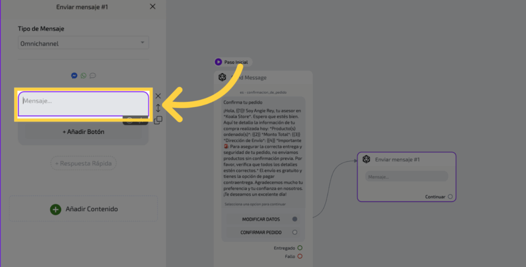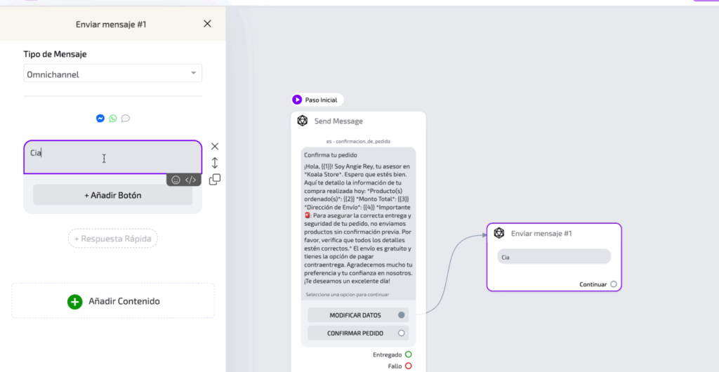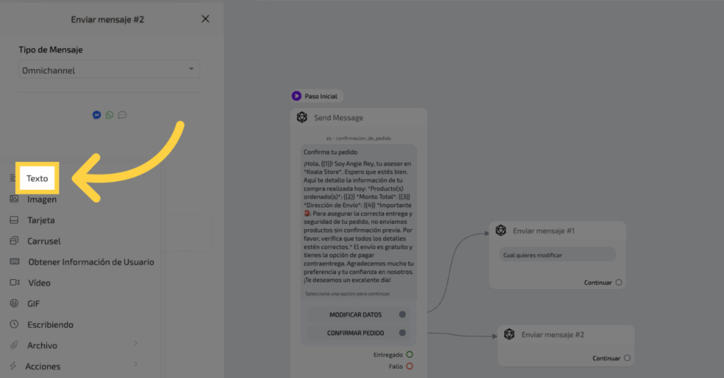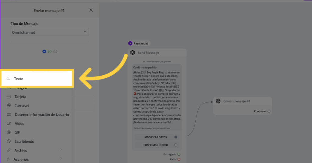 39. Clic “Enviar mensaje #1 Tipo de…”
