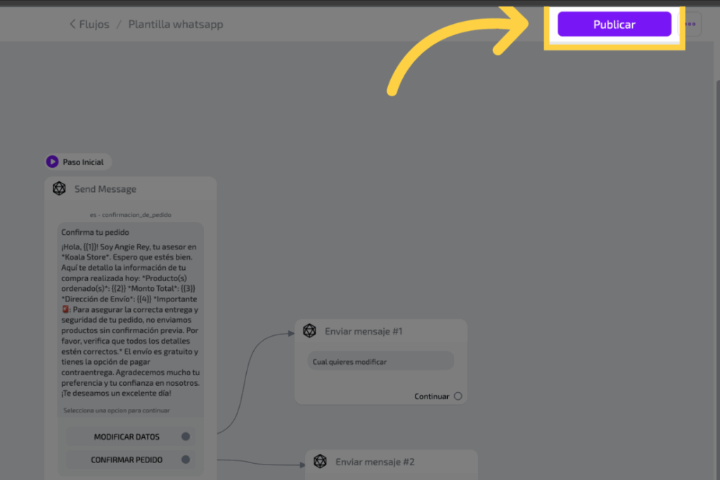 Esta guía te enseñó a crear flujos que incluyan plantillas de WhatsApp. Para enviarlas, puedes hacerlo desde la bandeja de entrada seleccionando “Enviar flujos” y eligiendo tu flujo con plantilla. También puedes enviarlas de manera masiva desde “WhatsApp”, seleccionando “Plantillas de mensajes” y eligiendo el flujo correspondiente. ¡Así podrás gestionar tus plantillas con facilidad!
