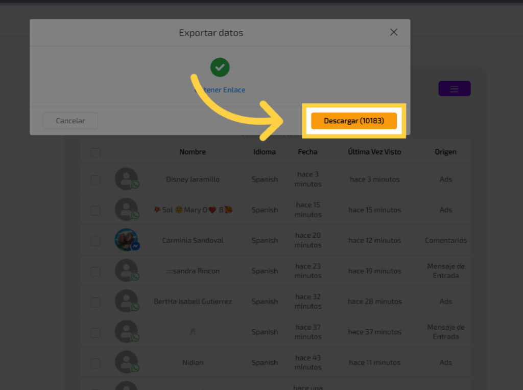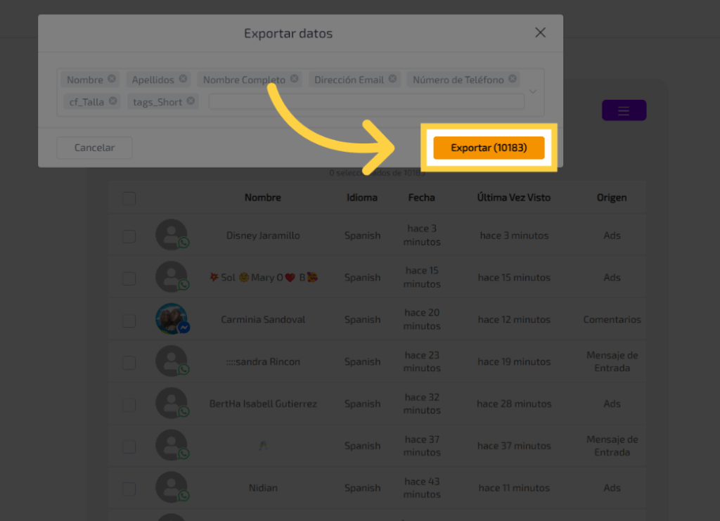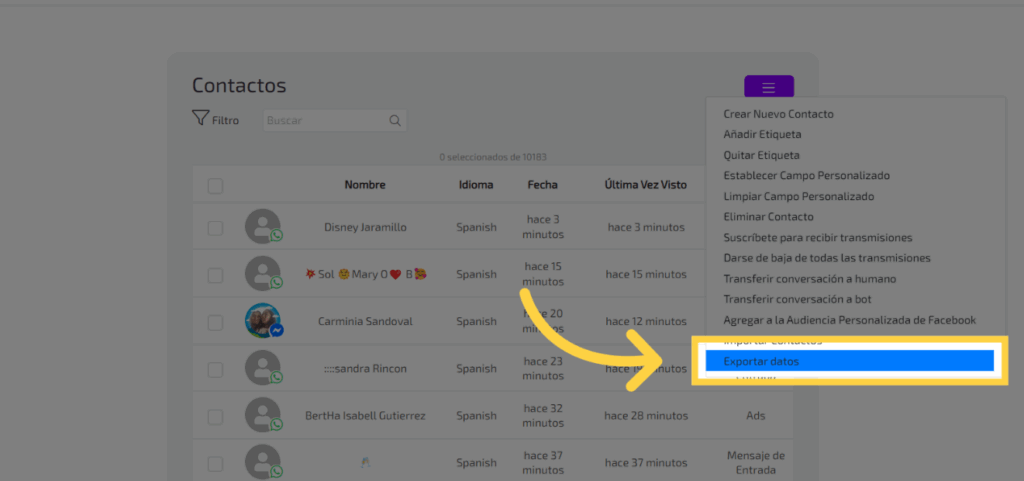 En este guía, aprenderás cómo exportar contactos con sus datos en Adsmartbot.