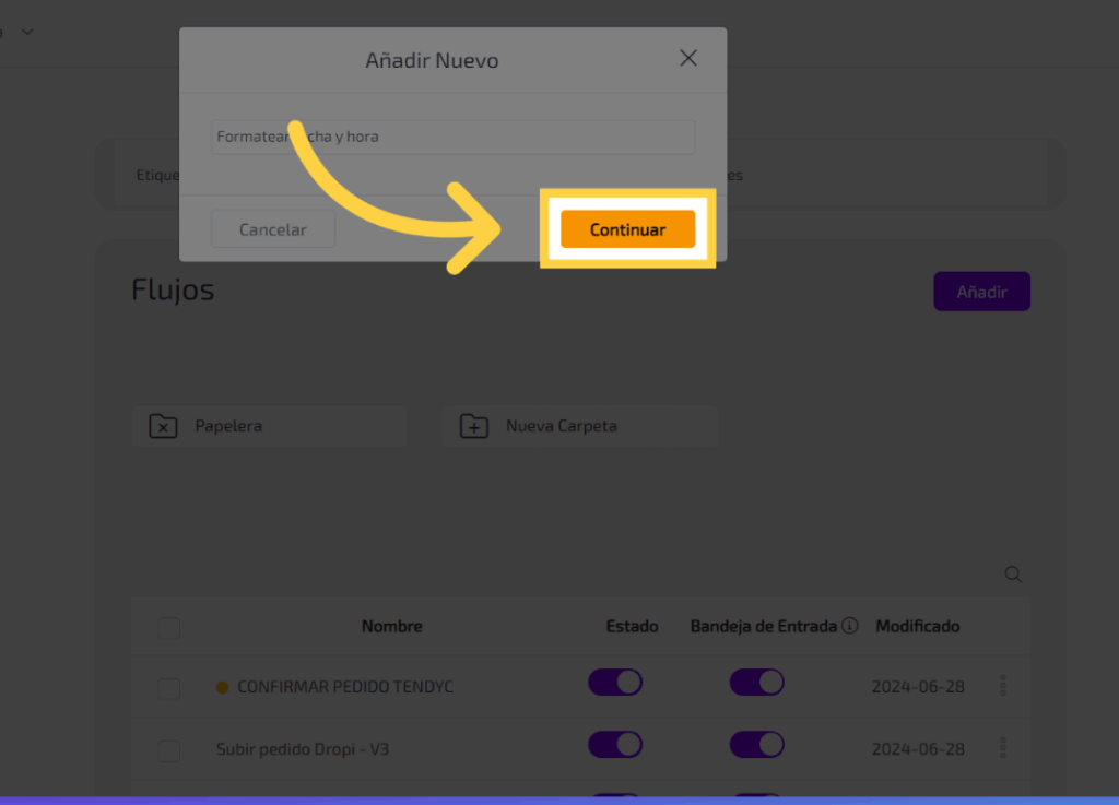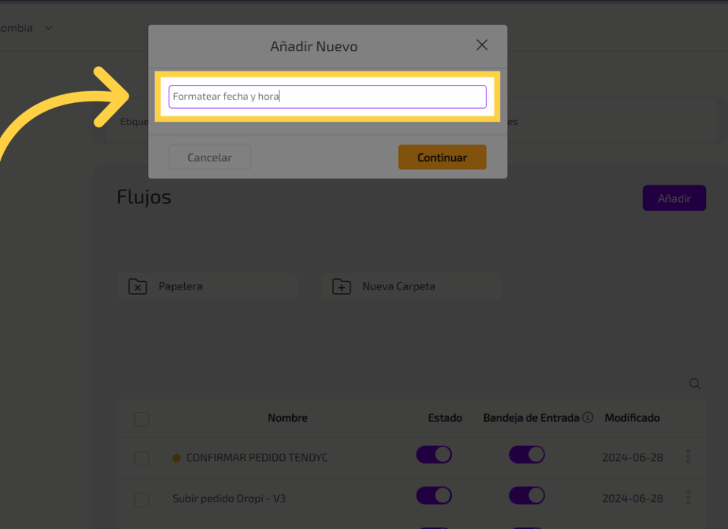 Asigna un nombre a tu flujo, “Formatear fecha y hora”.