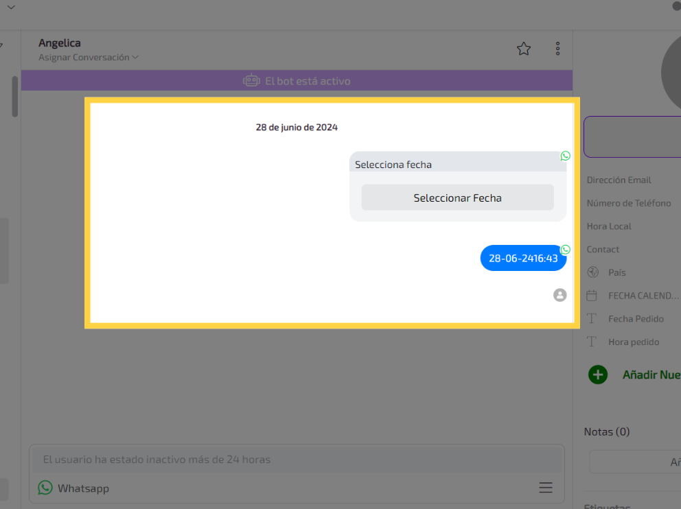 Aquí puedes evidenciar que la persona eligió una fecha y hora y se respondió de acuerdo a la configuración que se dio.