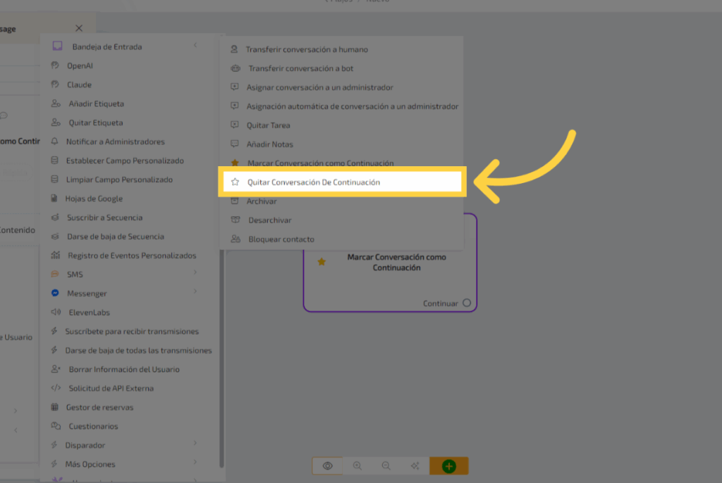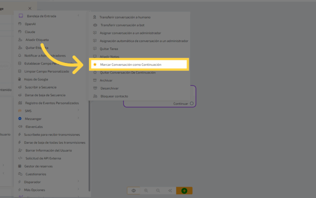 5. Clic “Marcar Conversación como Continuación”