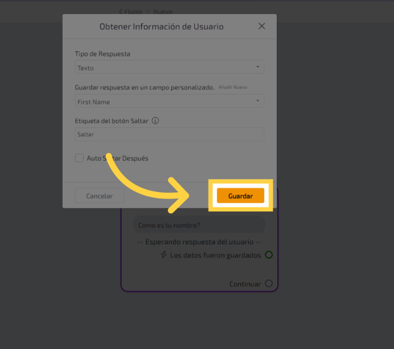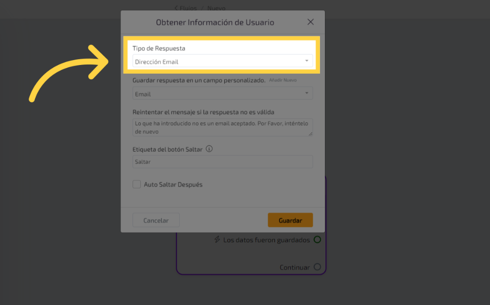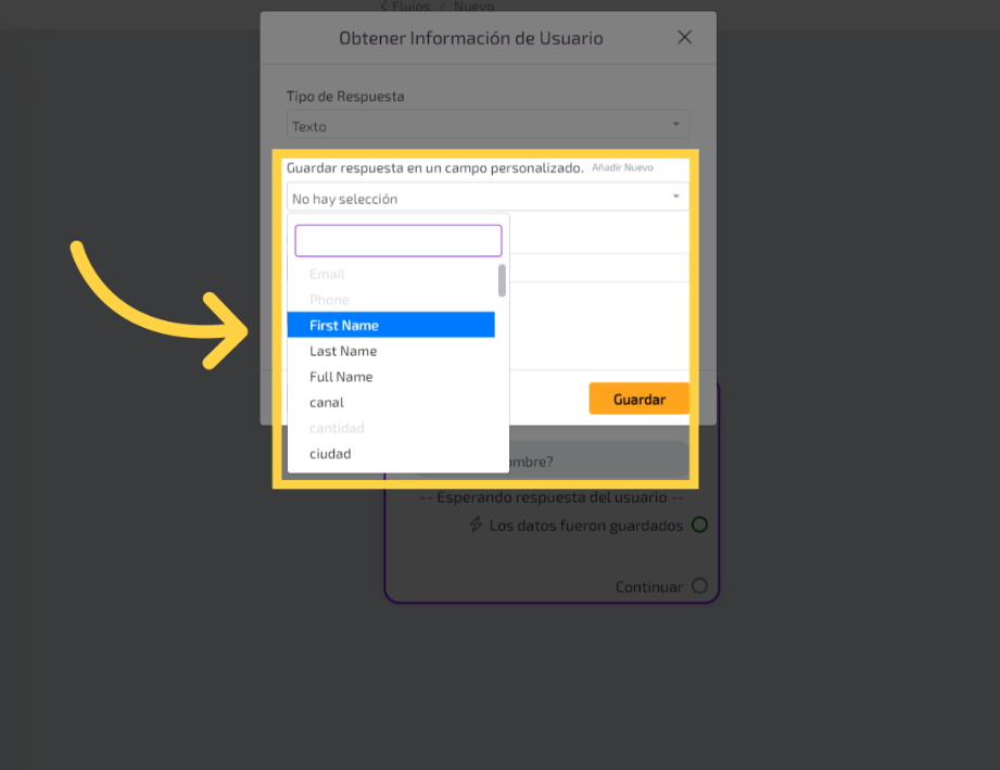 Selecciona el campo personalizado donde quieres guardar la respuesta
