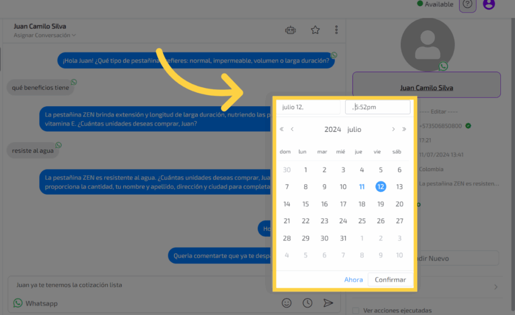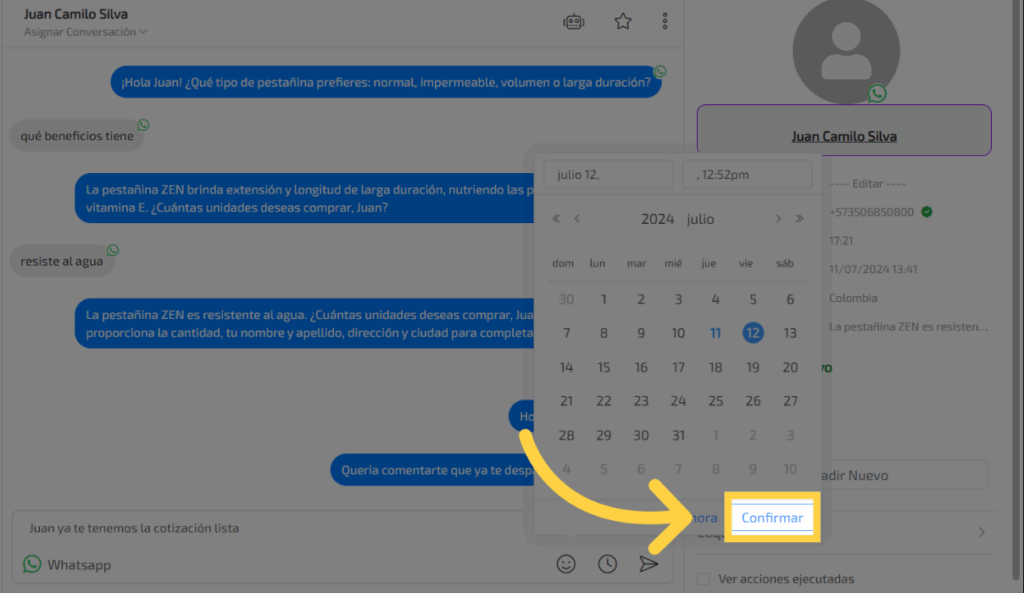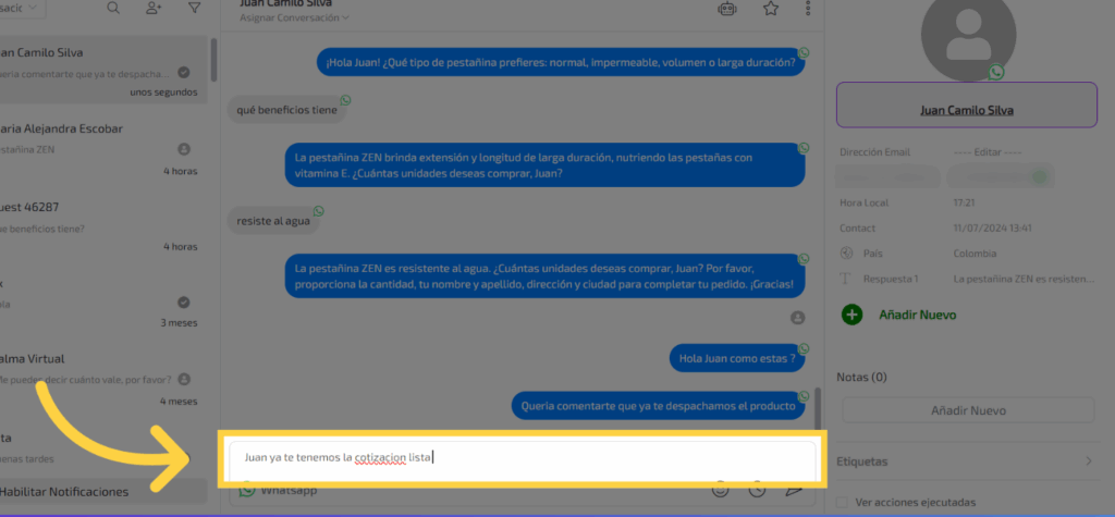 3. Llenar “Juan ya te tenemos la cotizacion lista “
