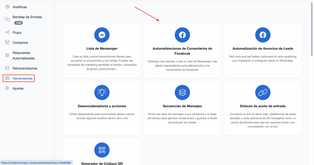 Crear nueva herramienta de automatización de comentarios en Facebook