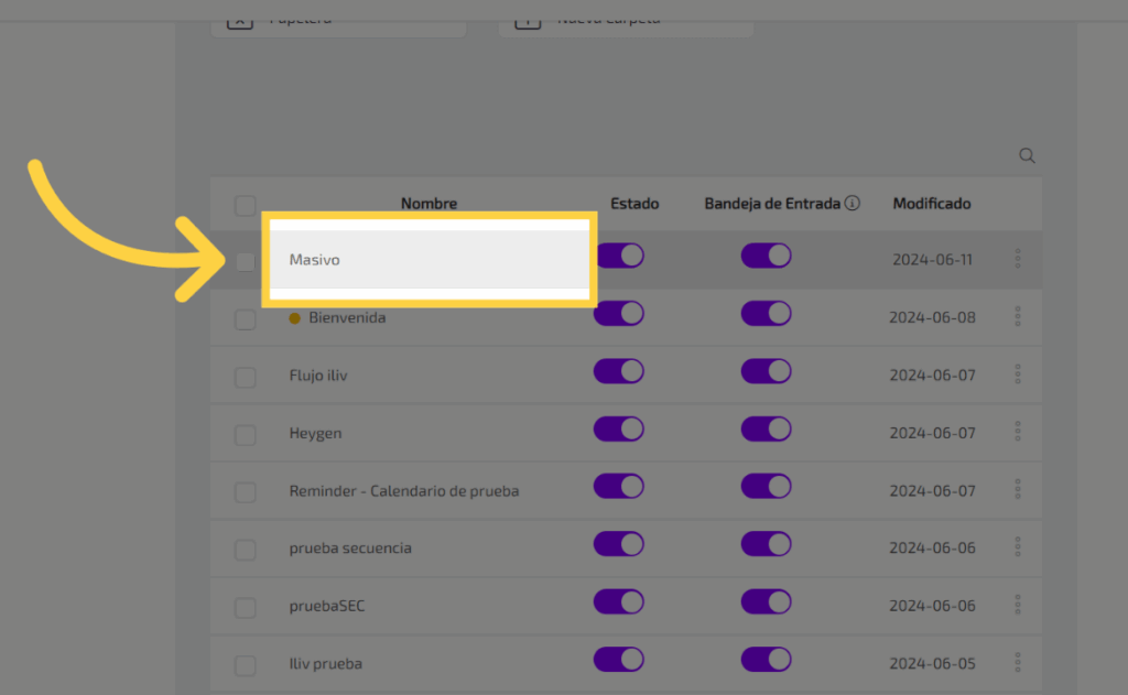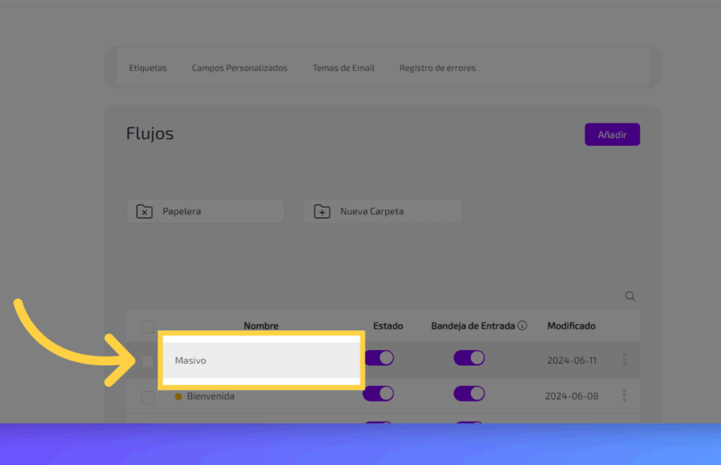 Selecciona el flujo sobre el cual quieres realizar la acción.
