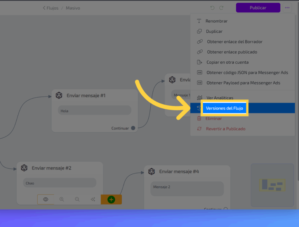 Selecciona “Versiones del Flujo”.