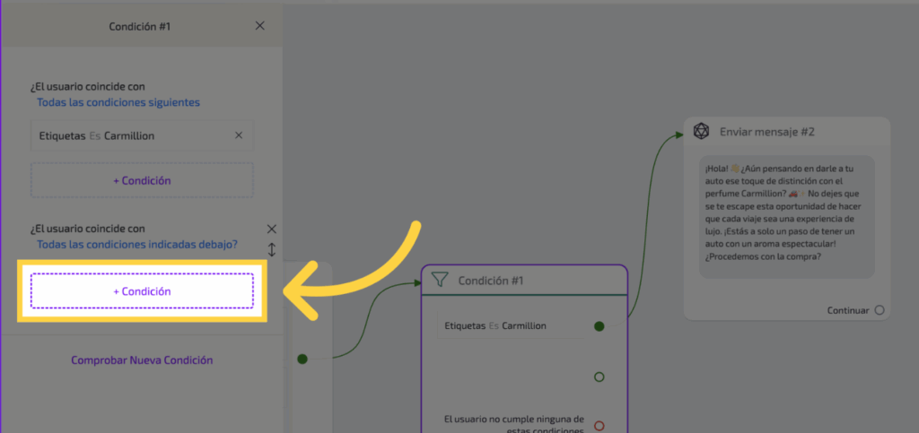 Ahora, si tienes más productos, seguirás estos pasos: haz clic en “Comprobar nueva condición”.
