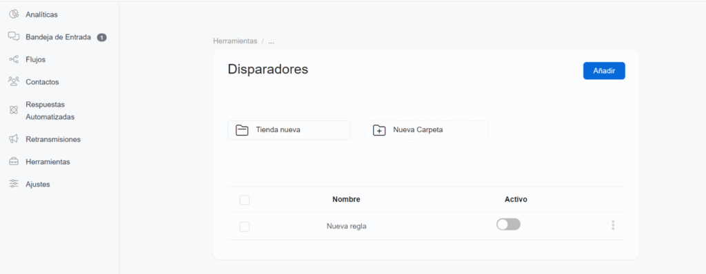 La tabla debajo del botón “Añadir” te mostrará los detalles de cada regla que hayas creado y su estado, ya sea activo o no.